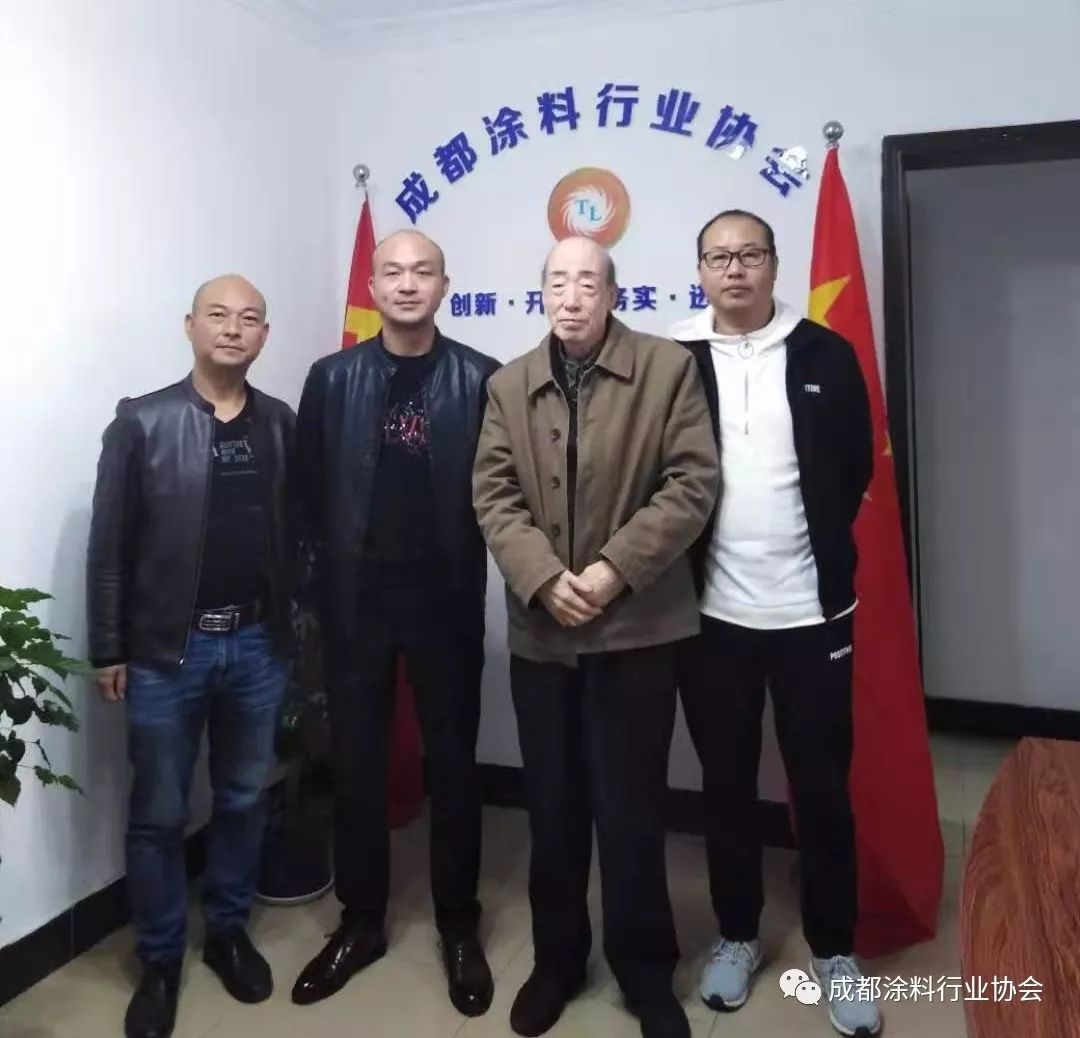 2019年11月8日四川佳豪融兴胶粘制品有限公司潘总和蒋经理来协会办公室和成都涂料行业协会名誉会长崔保忠、常务秘书长周圣森进行亲切的座谈交流。