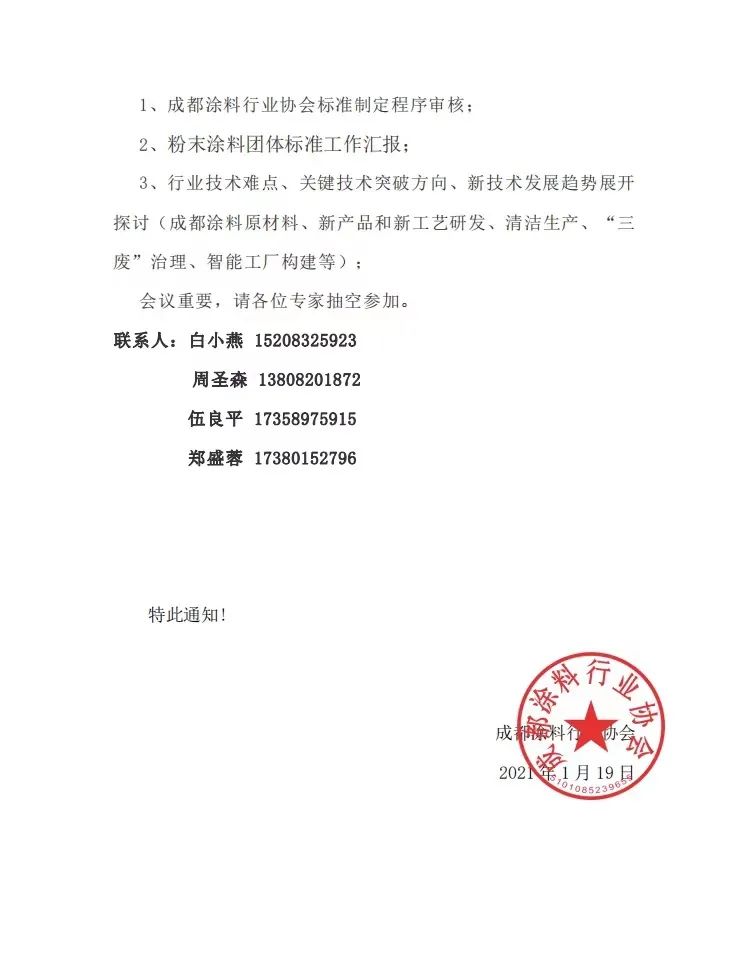 1、成都涂料行业协会标准制定程序审核;